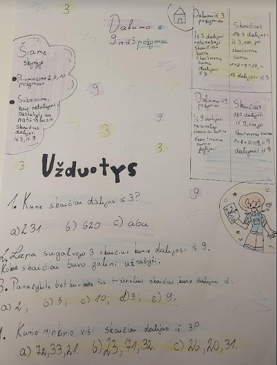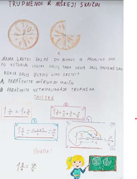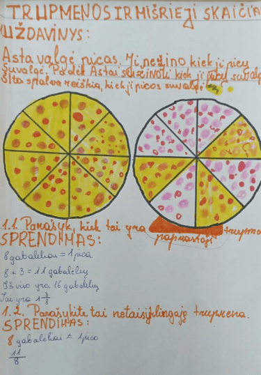 Dovydo Šuliausko darbas taip pat įsiminė savo vizualumu. Buvo aiškinama mišriųjų skaičių ir netaisyklingos trupmenos idėja.