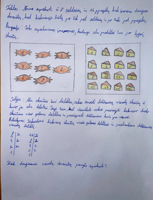 Miglė Mikėnaitė nagrinėjo didžiausią bendrą daliklį, pritaikant jį gyvenimiškoje situacijoje: